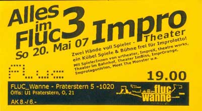 Frühling treibt aus und der Sommer guckt aus allen Ecken. Die Wiener Improvisationstheater-Szene trifft sich im FLUC zu einem wilden „IMPRO – Jam“. Beziehungsdramen, Expertengespräche und Musicals am gleichen Abend erwünscht? Im IMPRO- Theater kein Problem! SpielerInnen und Themen werden in rasanter Folge aus dem Hut gezaubert. Das Publikum spielt Lottofee und entscheidet per Los, wer was mit wem spielt- Bühne frei für Improlotto ! Mit
