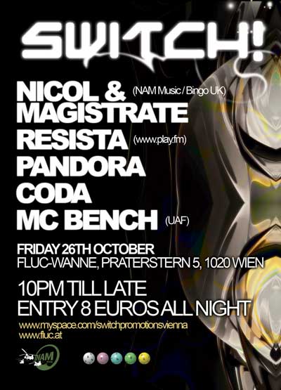 SWITCH! (drumandbass) Nicol & Majistrate (NAM Music, BINGO, UrbanTakeover, London/UK) Resista Pandora Coda Mc Bench (UAF / StP)